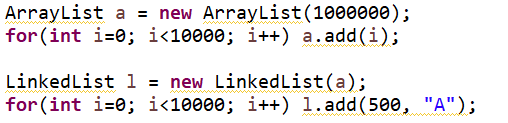 : 이번 예제는 ArrayList와 LinkedList 둘 다 순차적 또는 중간에 추가/삭제를 통해 장단점을 보는 예제이다.