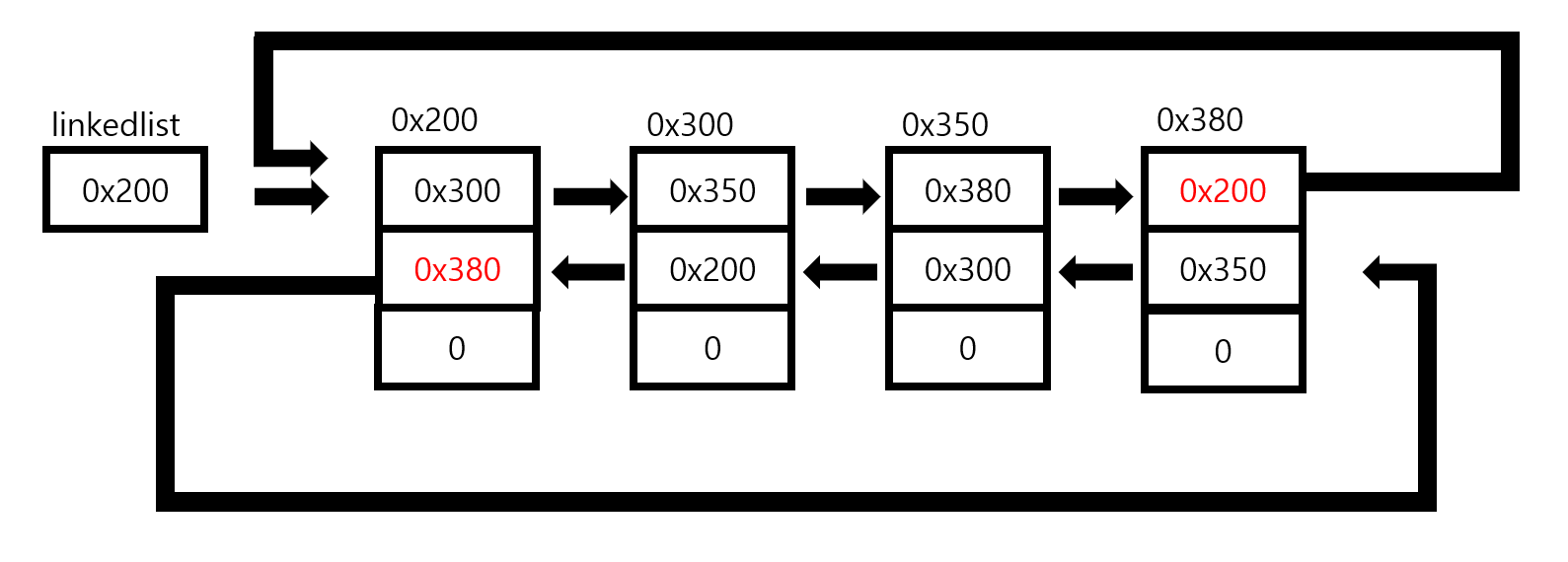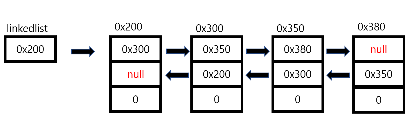 - 링크드 리스트는 이동방향이 단반향이기 때문에 다음 요소에 접근은 쉽지만 이전 요소에 접근하기 힘들다.