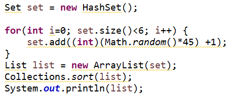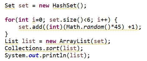 ( 위 코드를 몇번 실행하다보면 계속 똑같은 숫자가 비슷한 위치에 있는 것을 볼 수 있는데, Set 특성상