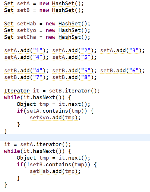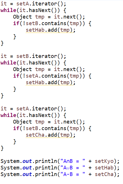 ( 사실 교집합은 retainAll, 합집합은 addAll, 차집합은 removeAll만 써서 구현해도 된다. )