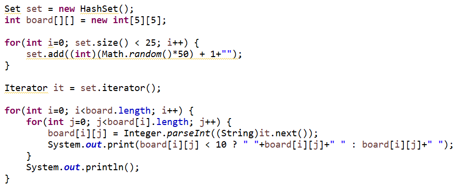 : 5x5의 빙고판을 만드는 예제이다.