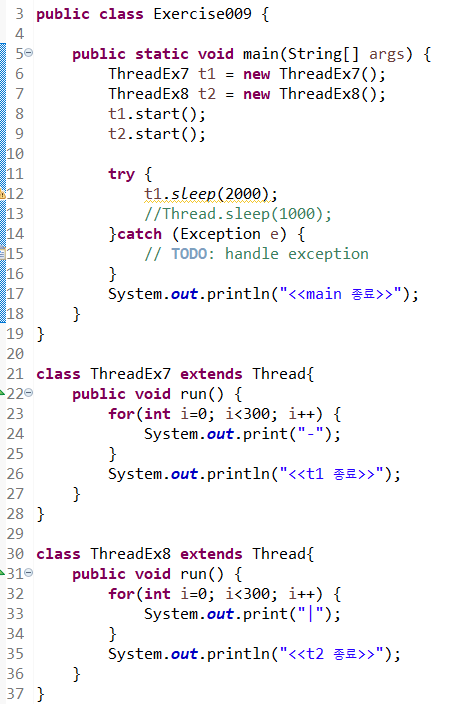 ( 저렇게 순서가 다른 이유는 "t1.sleep(2000);" 부분 때문이다. )