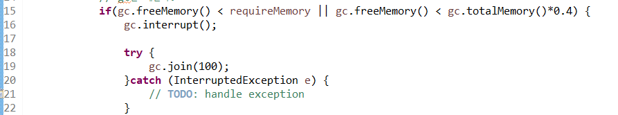 if(gc.freeMemory() < requireMemory || gc.freeMemory() < gc.totalMemory()*0.4) {
