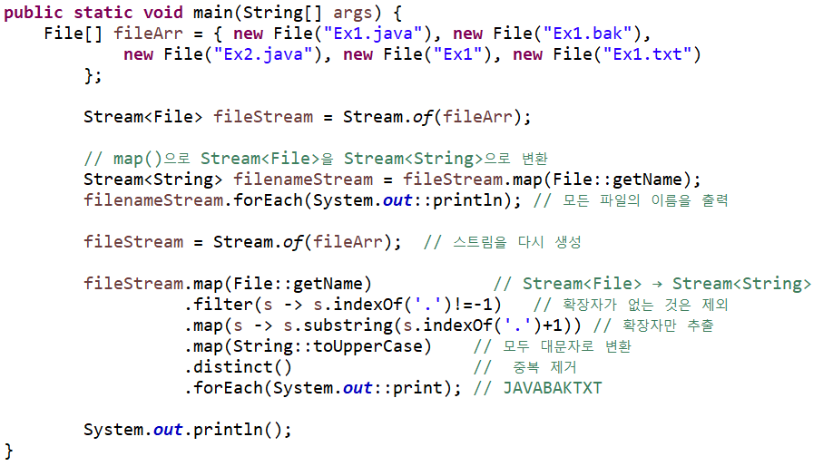 // map()을 통해 Stream<File> -> Stream<String>으로 변환함.