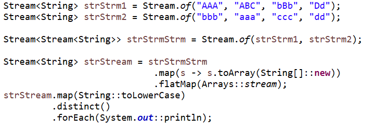 ( Stream<String>을 만들어주기 위해 Arrays.stream(T[])를 사용했다. )
