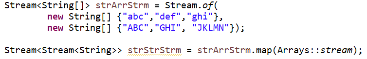 : Stream<Stream<String>>을 Stream<String[]>으로 map()을 사용하여 변환 후, Stream<String>으로