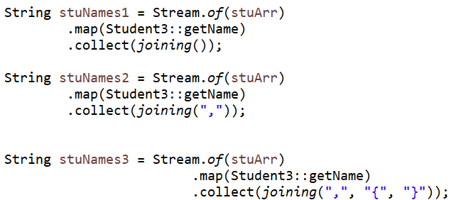 - 문자열 스트림의 모든 요소를 하나의 문자열로 연결해서 반환한다.