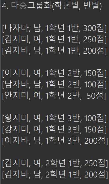 (4) 학년과 반을 기준으로 다중 그룹화하기.