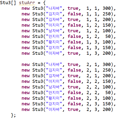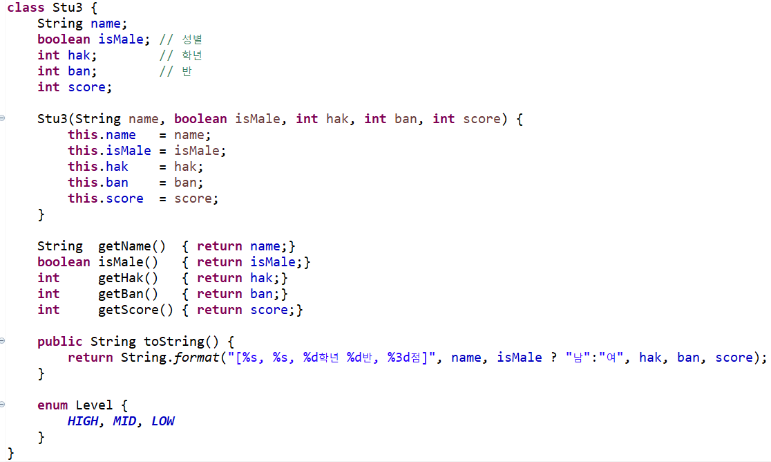 ( 아래의 Student의 정보가 있는 stu3클래스가 정의되어 있다고 가정하고 아래의 예제를 수행할 것이다. )