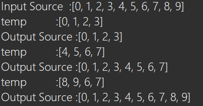 : temp 변수(바구니)의 size를 값의 개수 10개가 아닌 4개로 지정하여 4개씩 읽어서 쓰는 예제이다.