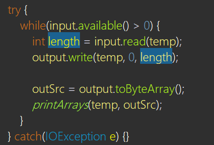 ( read()와 write()에서 IOException이 발생할 수 있기 때문에, try-catch문으로 감싸주었다. )