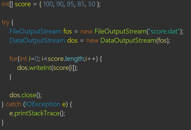 : score.dat에 점수를 쓰는 예제이다.
