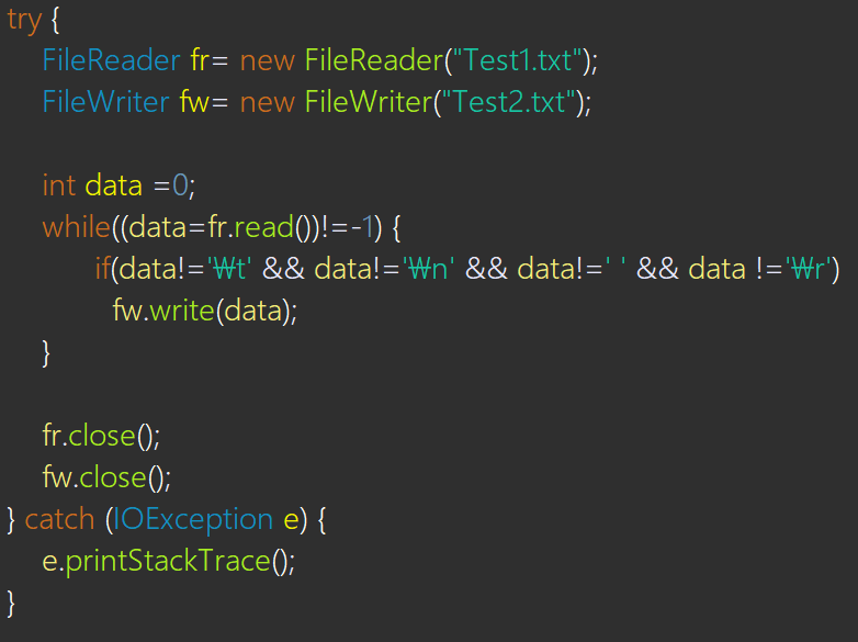 - FileInputStream과 FileOutputStream의 방법이랑 다르지 않으므로, 바로 밑 예제를 통해서 이해하자.