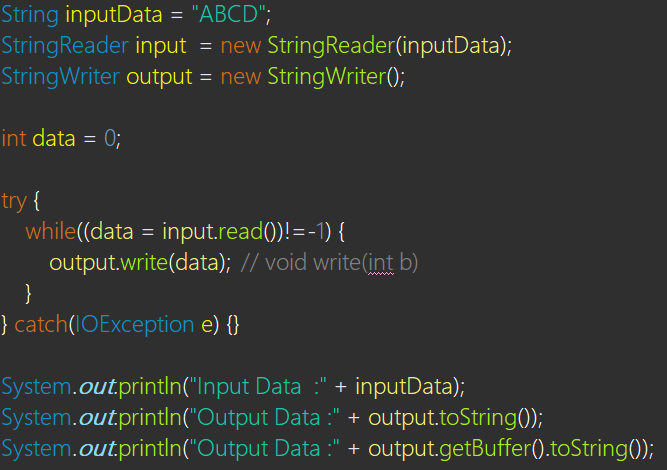 ( StringWriter는 CharArrayWriter처럼 메모리를 사용하는 스트림인데, 내부적으로 String Buffer를