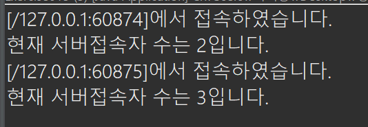 System.out.println("["+socket.getInetAddress()+":"+socket.getPort()+"]"+"에서 접속하였습니다.");