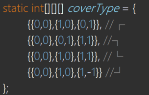 또한 삼각형( ┌, ┐, └, ┘)은 아래의 표처럼 (0,0) 기준으로 잡고 범위를 체크한다.