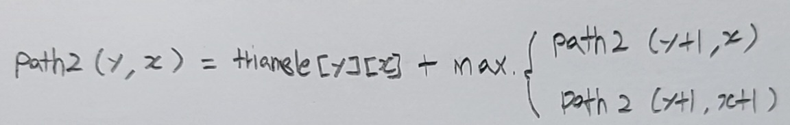 ret = triangle[y][x] + Math.max(solve(y+1, x), solve(y+1, x+1));