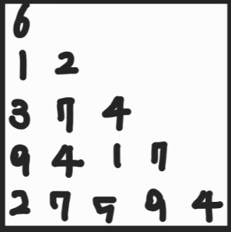 // 각각 삼각형의 크기 변수와 삼각형 안의 숫자 변수