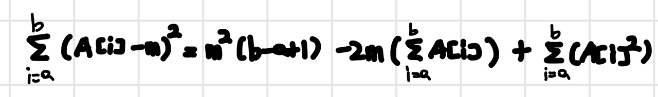 return m*m* (hi-lo+1)- 2*m*(sum) + sqSum;