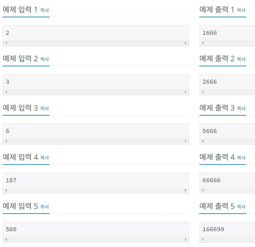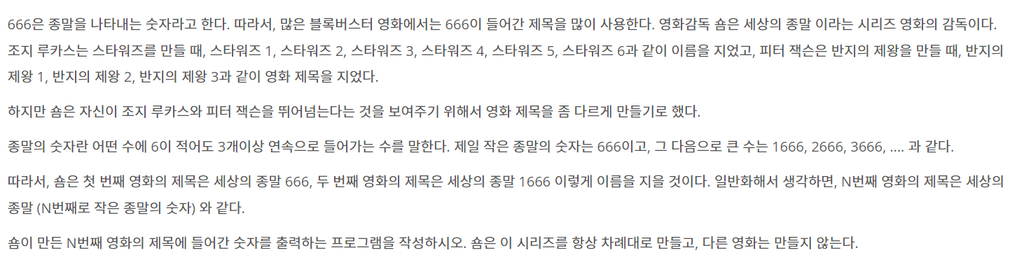 (1) 첫째 줄에 N번째 영화의 제목에 들어간 수를 출력한다.