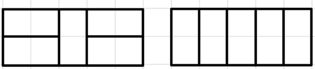 (3) 위의 그림은 2x5 크기의 직사각형을 채우는 비대칭 타일링 방법 여섯 가지를 보여준다.