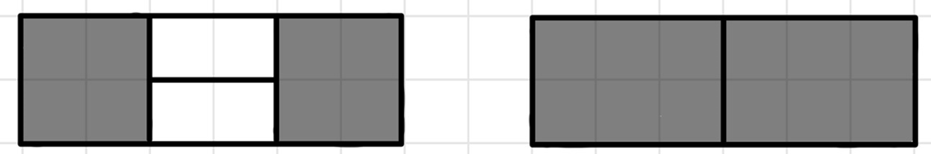 만약 짝수라면, 아래의 그림처럼 중간에 2칸의 가로 타일과 절반을 나뉜 부분들이 서로 대칭 이어야 한다.