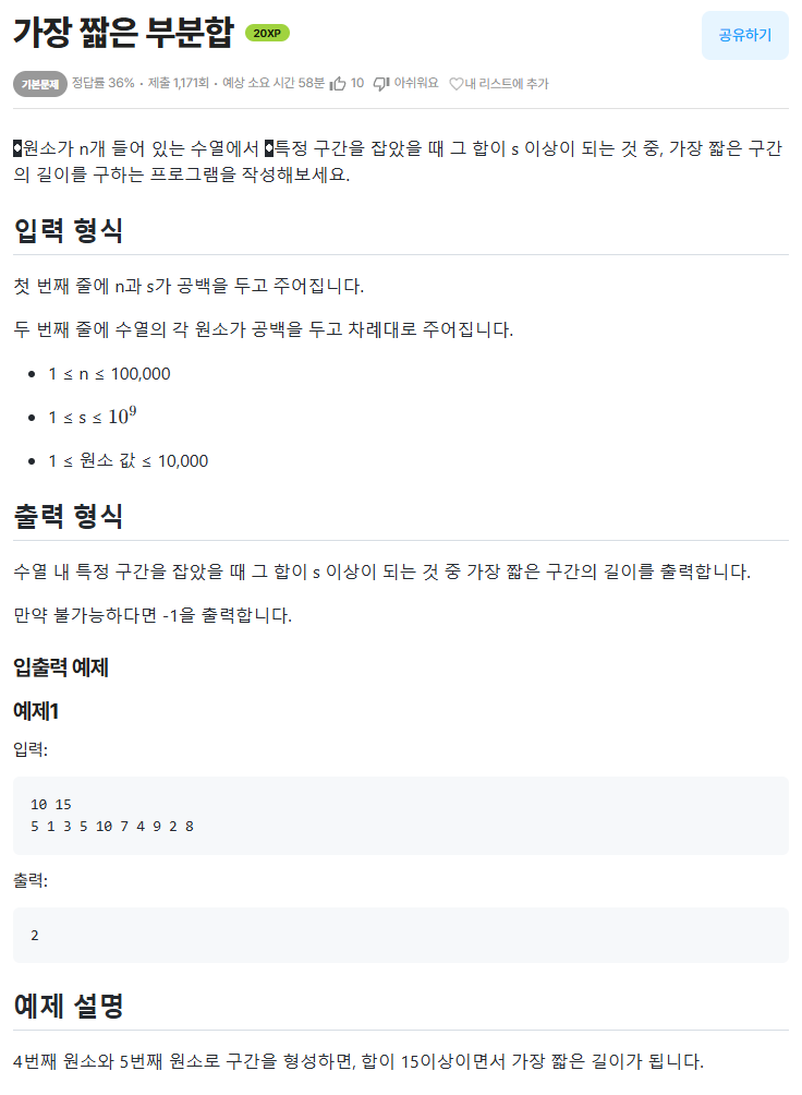 https://www.codetree.ai/missions/8/problems/shortest-subtotal?&utm_source=clipboard&utm_medium=text