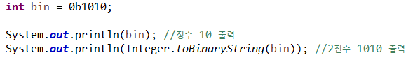 (10진수를 2진수로 출력해주는 지시자가 없기 때문에, 저렇게 toBinaryString으로 변환해 주어야 한다.)