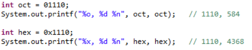 16진수 또는 8진수를 출력할 때는 printf를 사용한다.