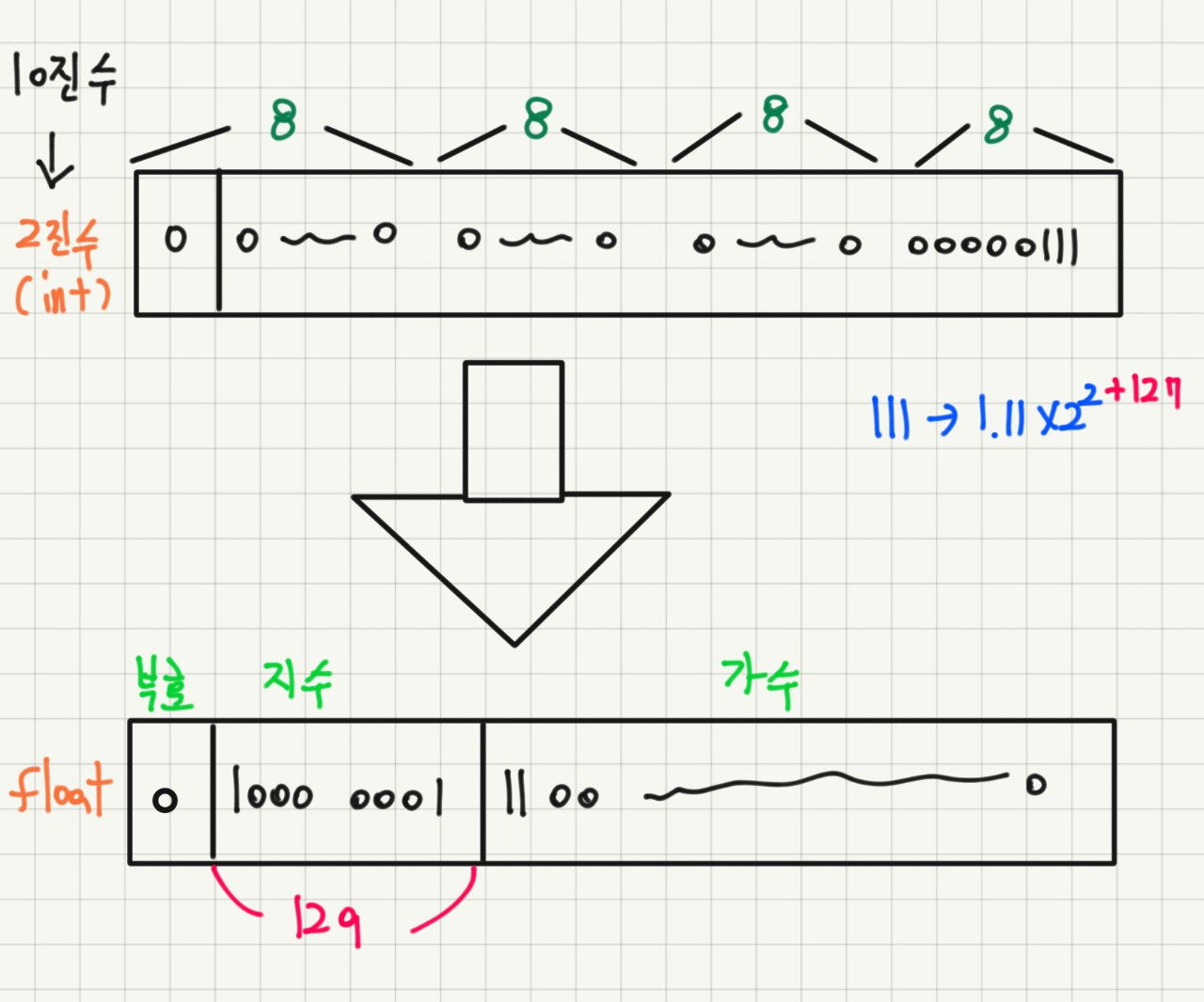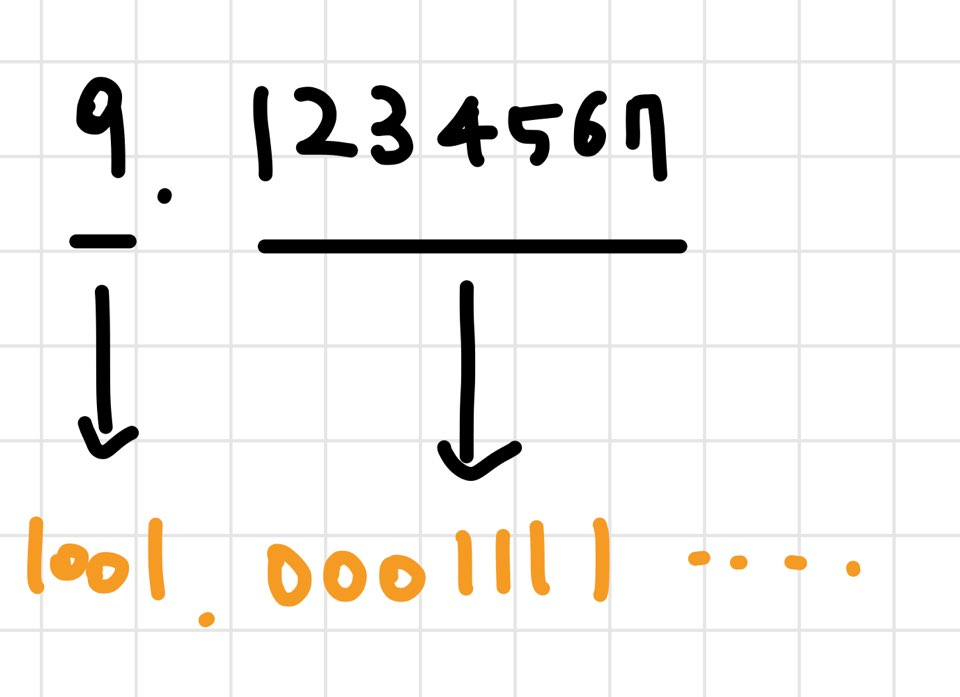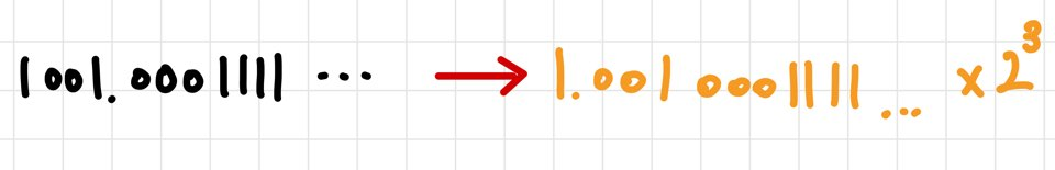 - 예시) 10진수를 2진수로 바꾸고 정규화를 통해 float 형식으로 변환하기.
