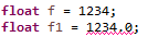 (f는 자동적으로 컴파일러가 (float)를 넣어주지만, f1은 리터럴 값이 기본 double로 되기 때문에 자동 형변환이 어렵다.)