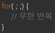 - for 문에는 세 가지 요소를 생략하고 빈칸을 만들어 낼 수 있다.