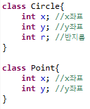 ( Circle이 Point를 포함함으로써 '원은 점을 가지고 있다' 라는 뜻이 된다. )