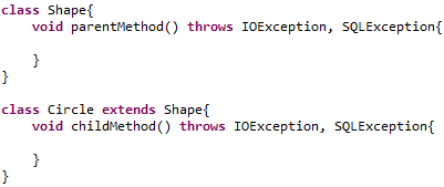 (5) 조상 클래스의 메서드의 예외의 수보다 같거나 적어야 한다.