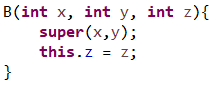 - 컴파일러가 자동으로 super()을 넣어주지만, 위 6번째 줄에서는 super()가 아닌 super(x,y)의 형태를