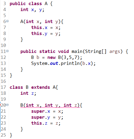 - 자손 클래스의 멤버가 조상 클래스의 멤버를 사용할 수도 있으므로 조상의 멤버들이 먼저 초기화되어