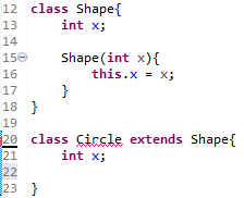 ( 그 이유는 Circle에 생성자 Circle()이 자동적으로 추가되어지는데, 그러면 super()도 생성된다. )