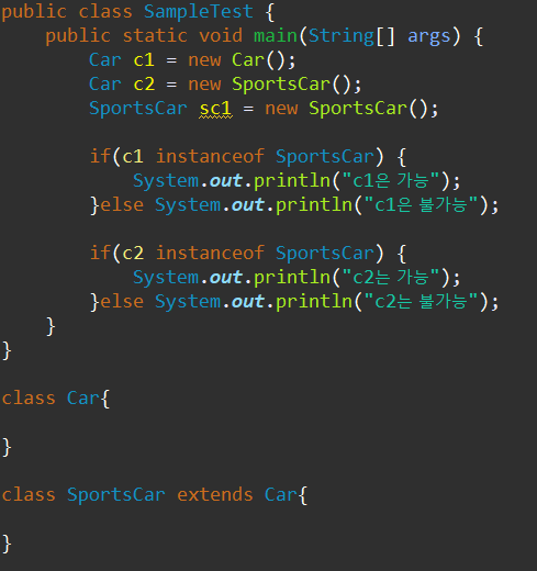 ( 그러므로, 만약 확실하지 않고 컴파일 에러가 발생할 것 같으면, instanceof 연산자를 이용하여 확인한다. )