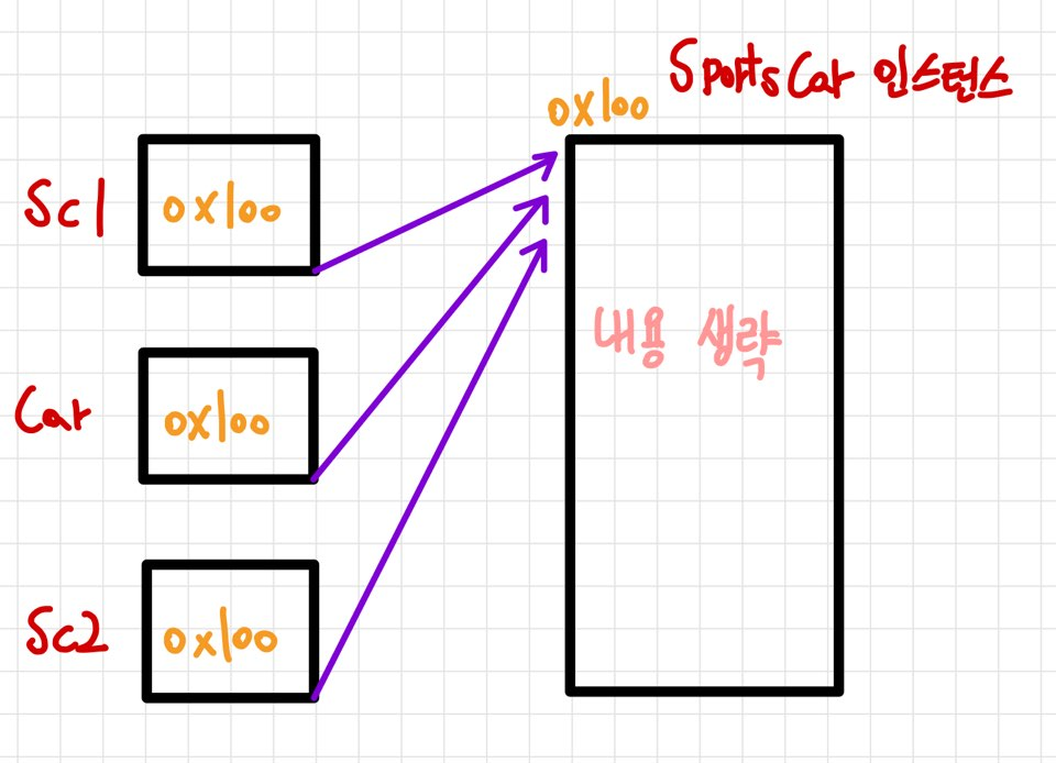- 참조변수 또한 기본형 변수와 같이 형변환이 가능하다.