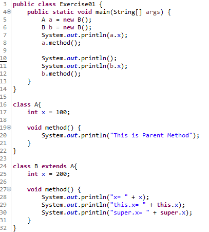 ( 인스턴스 변수를 이 예제처럼 직접 접근을 한다면, 참조 변수의 타입에 따라 사용되는 인스턴스 변수가