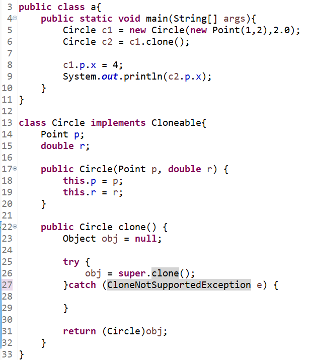 ( 이렇게 따로 Circle에 대한 참조변수를 만들고 복사해주면 된다. )