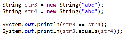( == 비교는 주소 비교이므로, 아래의 코드는 false가 나오게 된다. )