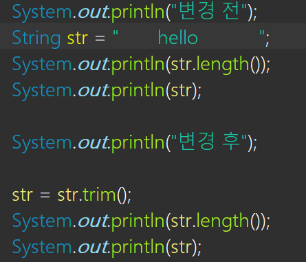 - 자바 소스 파일에 포함된 모든 문자열 리터럴은 컴파일 시에 클래스 파일에 저장된다.