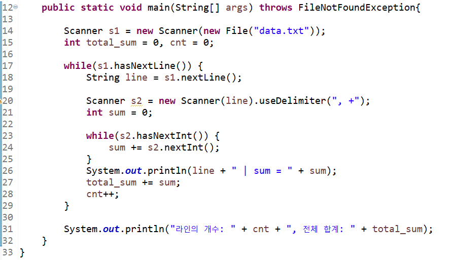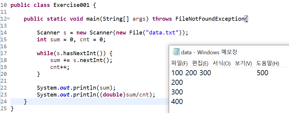 : 파일을 통해 받고 합계를 구해 평균을 계산하는 예제이다.