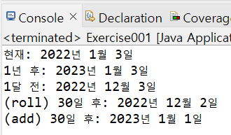 : Calendar의 메서드를 이용해서 날짜를 수정하는 예제이다.