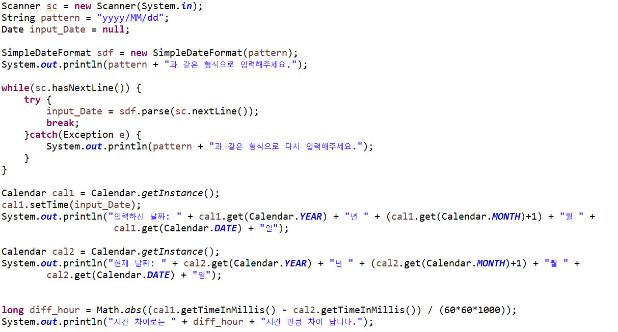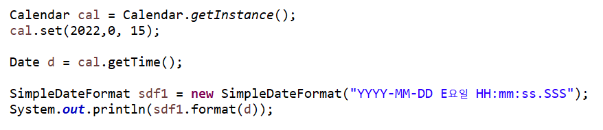 ( Date에서 Calendar로 넘어갈 때는 Calendar의 setTime()을 쓴다. )