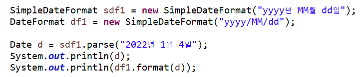( 반환 인스턴스는 DateFormat을 상속받아 완전하게 구현한 SimpleDateFormat이다. )