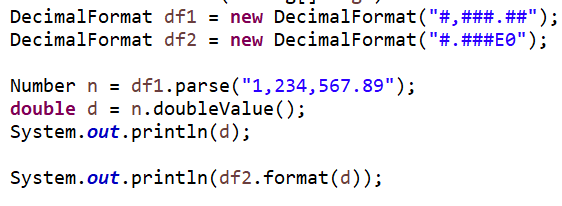 - 형식화 클래스 중에서 숫자를 형식화 하는데 사용되는 것이 DecimalFormat이다.