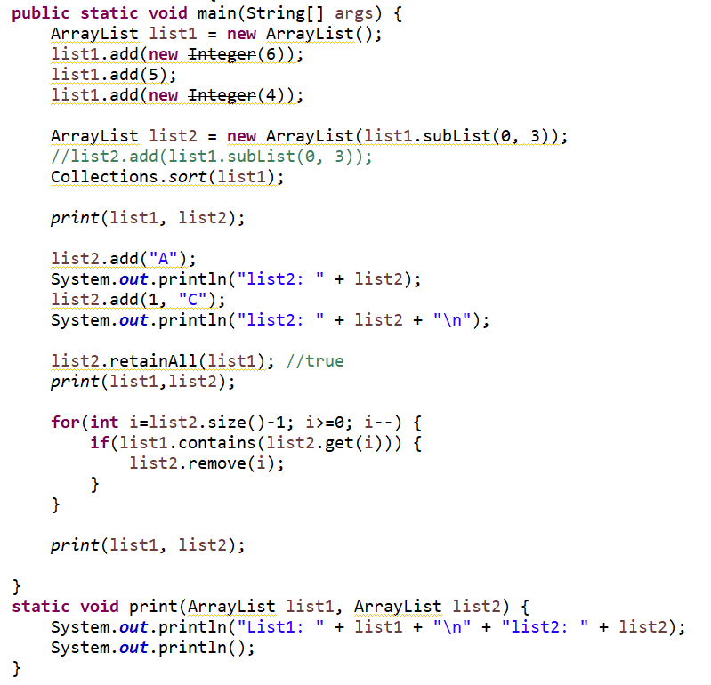 : 추가, 제거, 포함 등의 메서드를 이용하는 예제이다.