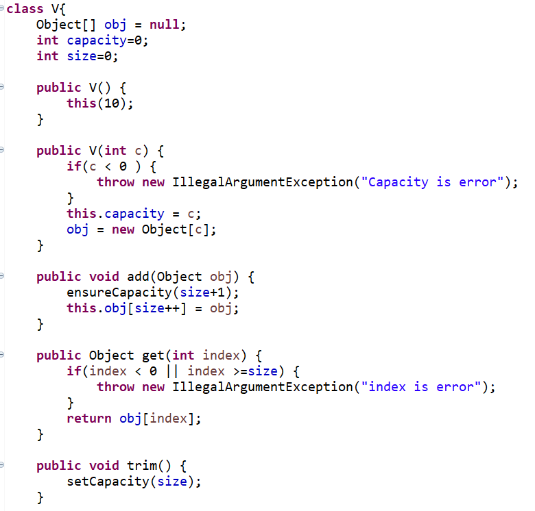 - Object 배열을 이용해서 데이터를 순차적으로 저장하며, 공간이 없다면 더 큰 새로운 배열을 만들어서